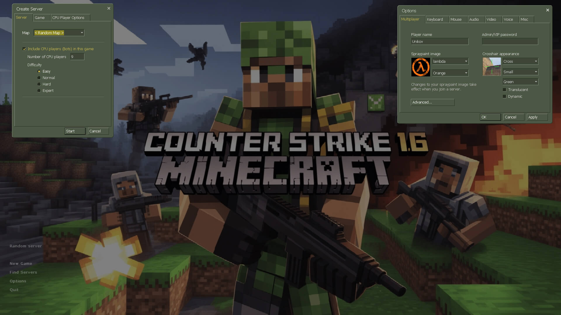 No clutter, just essential info popping against blocky backdrops. Radar shows sites as mini-fortresses, teammate pings as glowing beacons. It's intuitive, letting you focus on the action without squinting. That clean HUD keeps your K/D climbing while you admire the counter strike 1.6 minecraft polish.